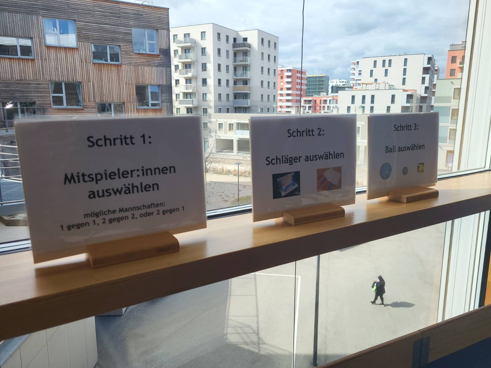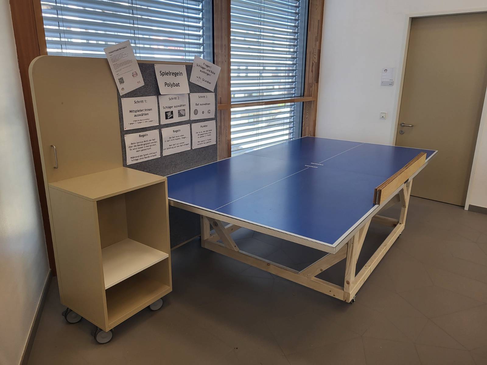 Schließlich wurden noch Banden und Schläger ergänzt, alles Schritt für Schritt über viele Wochen mit den Kids hergestellt. Ich finde, das Ergebnis kann sich sehen lassen… Man beachte: Sowohl die Schläger, als auch die Verstellbarkeit der Banden sind eine Innovation und im feinen, kontinuierlichen Dialog mit den Kolleg:innen vor Ort entstanden.