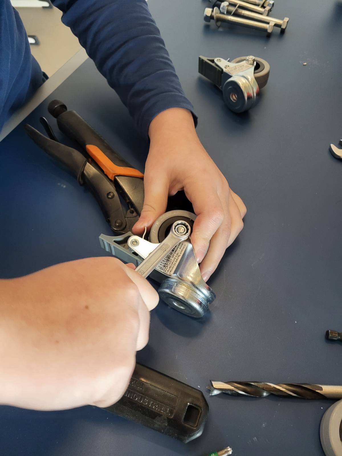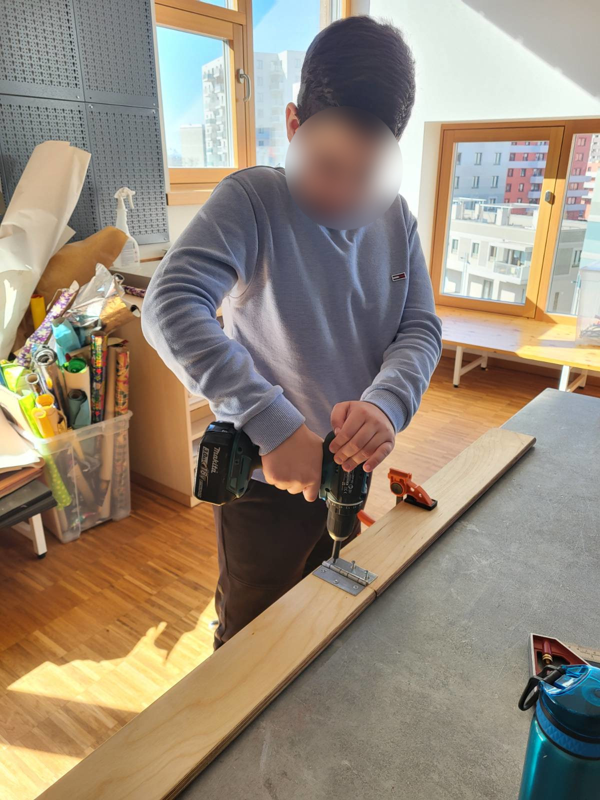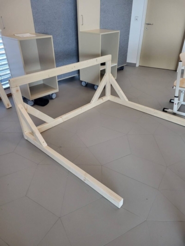 Ein defekter Tischtennis-Tisch konnte vom Sperrmüll gerettet und vom verbogenen Untergestell befreit werden. Gemeinsam mit einigen Schüler:innen wurde ein neues Untergestell konstruiert und Stück für Stück zusammengebaut, auf dem dann die Platten montiert wurden.